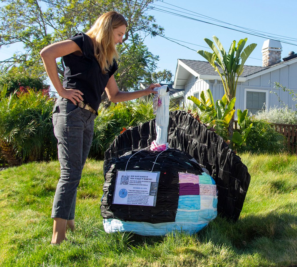 The feedback received was so positive she decided to make another display for Thanksgiving. The same rules applied, passersby who see the masked turkey displayed in her front yard, enter the QR code and guess the amount of masks used to make the turkey.