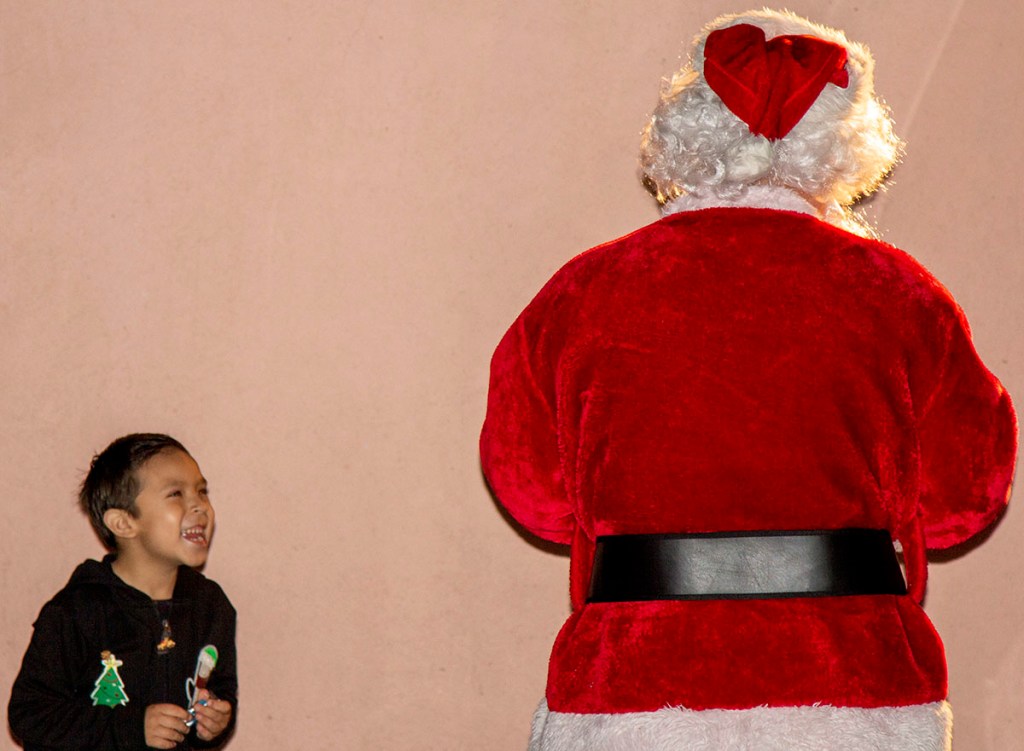 When the truck stopped, the lights flashed on and out came Williams, Mr. and Mrs. Santa Claus, and a few volunteers who helped coordinate the project.